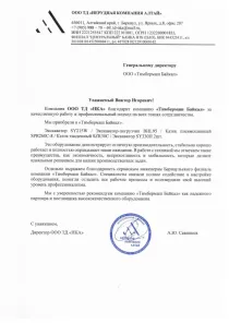 Рекомендательное письмо ООО "Нерудная компания Алтай"