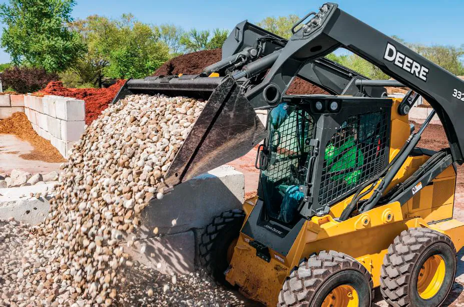Грузоподъемность мини-погрузчиков John Deere 330G, 331G, 332G и 333G составляет 1700 килограмм.