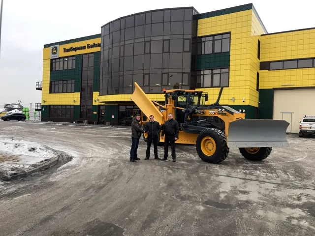 Состоялась очередная передача автогрейдера John Deere 772G с дополнительным навесным оборудованием для уборки снега – боковой отвал CWS!
